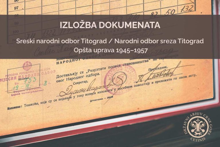 Internet izložba dokumenata ,,Sreski narodni odbor Titograd / Narodni odbor sreza Titograd – Opšta uprava 1945-1959“