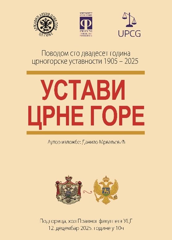 Povodom obilježavanja 120 godina crnogorske ustavnosti, Državni arhiv Crne Gore, u saradnji sa Pravnim fakultetom Univerziteta Crne Gore i Udruženjem pravnika Crne Gore, organizuje svečanost posvećenu jednom od najznačajnijih dokumenata crnogorske pravne istorije.